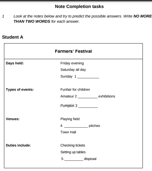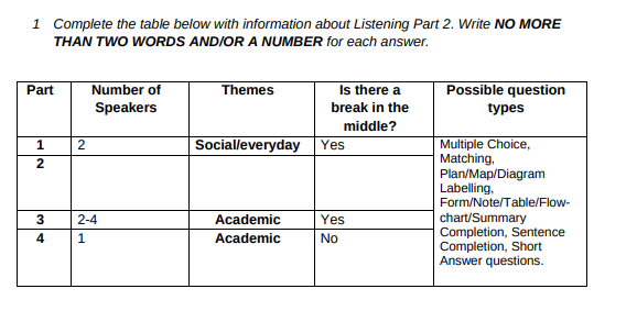 Table completion V Note talking questions